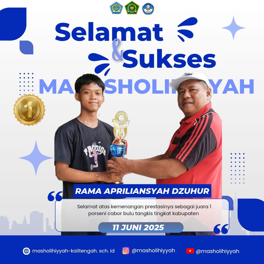 Demak, 11 Juni 2025 – Madrasah Aliyah (MA) Sholihiyyah Demak kembali menorehkan prestasi gemilang di ajang Pekan Olahraga dan Seni (Porseni) tingkat Kabupaten. Kali ini, siswa bernama Rama berhasil menjadi Juara 1 untuk cabang olah raga bulu tangkis.